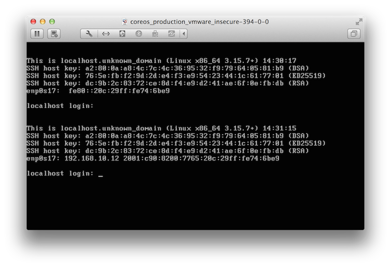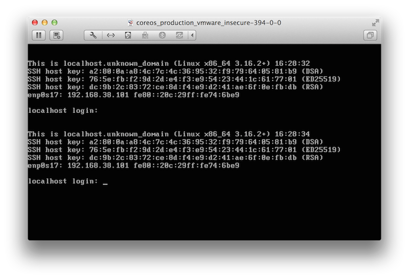 $ cd coreos_production_vmware_insecure $ open coreos_production_vmware_insecure.vmx