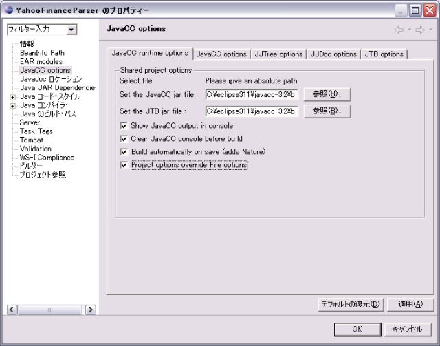 | DEBUG_TOKEN_MANAGER | JavaCCによって生成されたParserにデバックトレースを入れる | false |