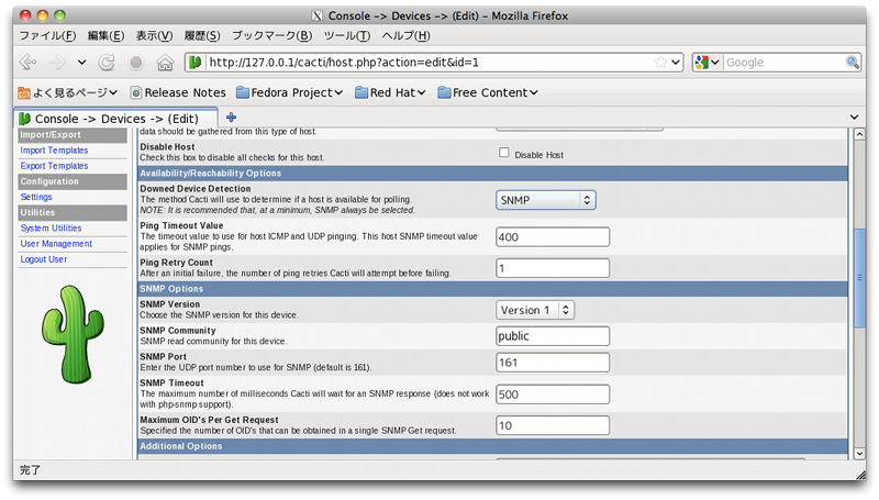 $ snmpwalk -v1 -c public localhostと同じように設定する 同じ画面の最後で、SNMP Interface Statistics を追加して SAVE