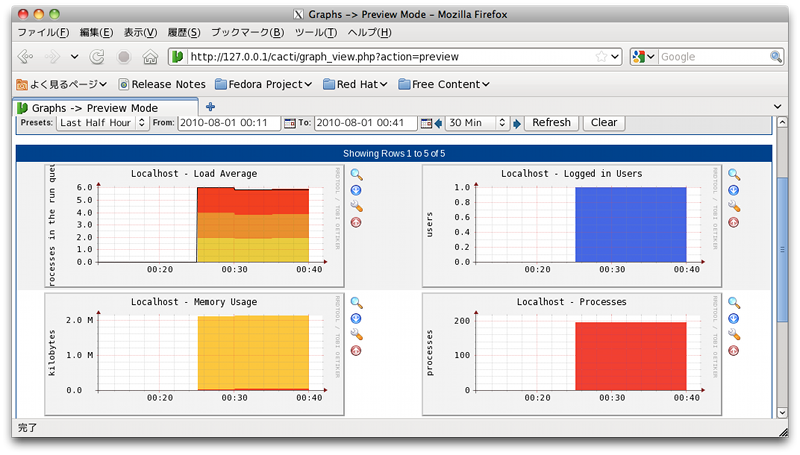 $ sudo yum -y install net-snmp net-snmp-utils $ sudo yum -y install rrdtool $ sudo yum -y install cacti