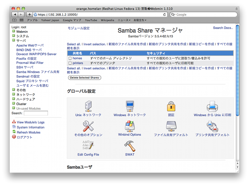 $ sudo /etc/init.d/smb start SMB サービスを起動中: [ OK ] $ sudo /etc/init.d/nmb start NMB サービスを起動中: [ OK ]