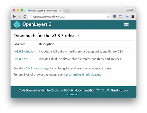 - http://openlayers.org/ から、v3.8.2-dist.zip をダウンロードする