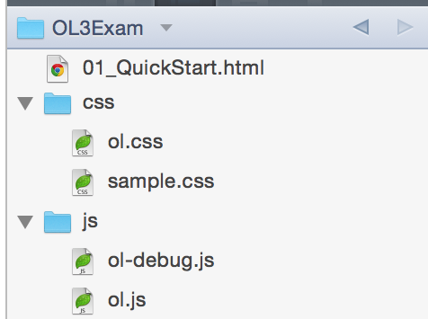 - ol.js, ol-debug.js, ol.css を js/ css/ に配置する