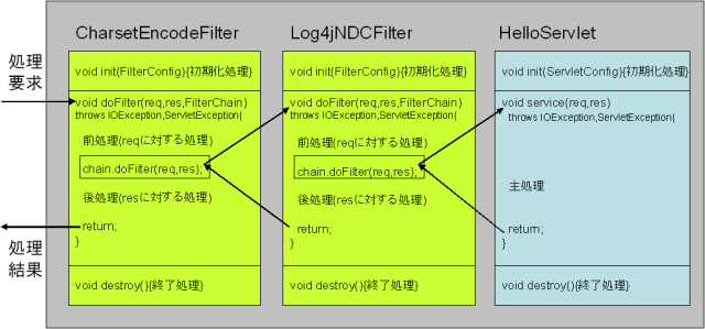 | 親 | RequestDispatcher | getRequestDispatcher?(String path) | web.xmlで、pathに割り付けた、RequestDispatcher を返す |