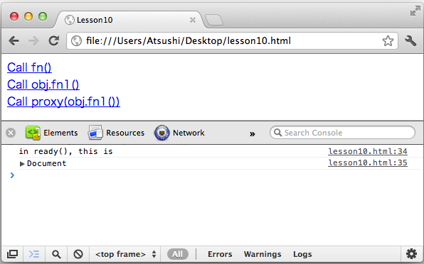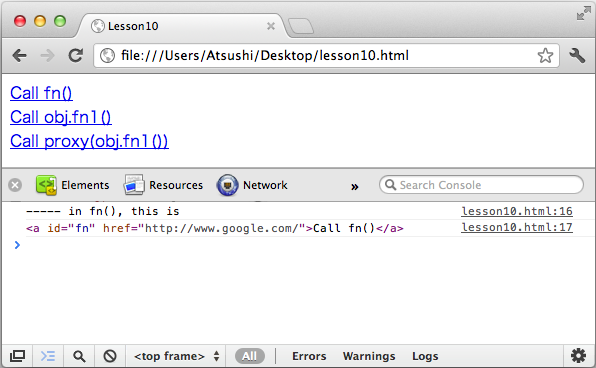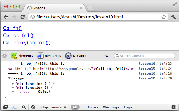<a id="proxy" href="http://www.google.com/">Call proxy(obj.fn1())</a><br/>