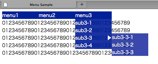 * Menu タブ (サブサブMenuでは透明度は 0.9*0.9 になる)
