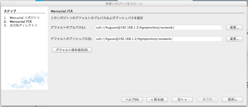 情報 - クローン元: ssh://hguser@192.168.1.2/hgrepository/ourwork/