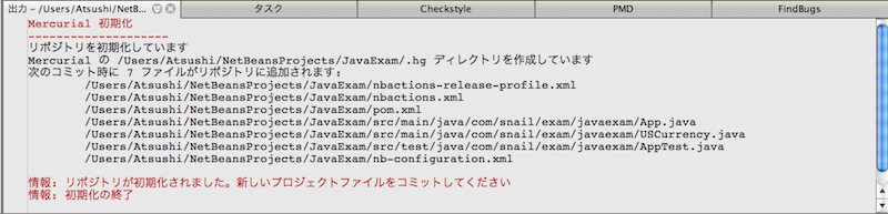 情報 - 宛先: /Users/Atsushi/NetBeansProjects/JavaExam