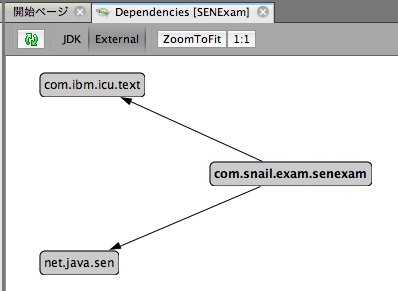3. プロジェクトを選択して、依存関係チェックを動かすと、結果が出力される。パッケージ単位での依存関係が図示される