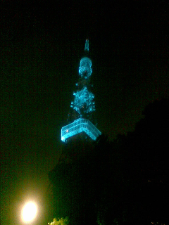 - 見上げるときしょい色の東京タワーが・・・ピンクリボン・キャンペーン(乳癌検診を呼びかける運動)の一環のようだ