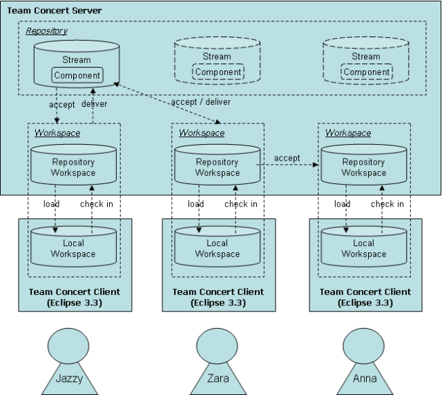 - Iteration と Workitem は、Team Concert サーバ上で状態が管理される。Web または、Eclipse plugin から操作可能