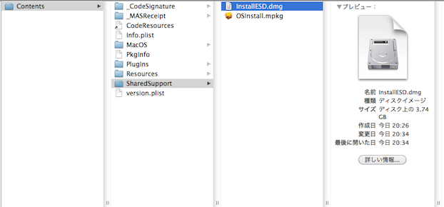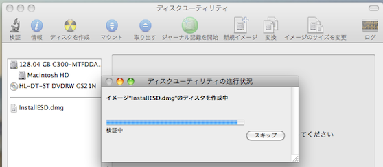 2. InstallESD.dmg を何処ぞにコピーして、ディスクユーティリティーで DVD に焼き付ける