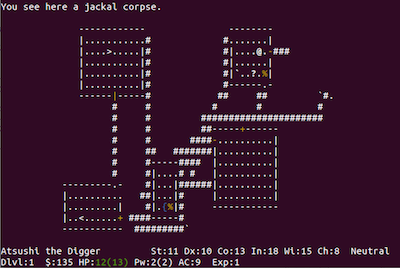 Nethack の世界ですな a jackal corpse (ジャッカルの死体) は食べられます。