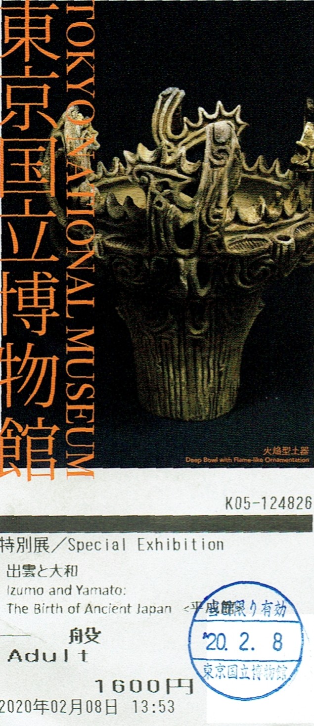 - 2020-02-07 日本書紀成立1300年 特別展「出雲と大和」, 東京国立博物館
