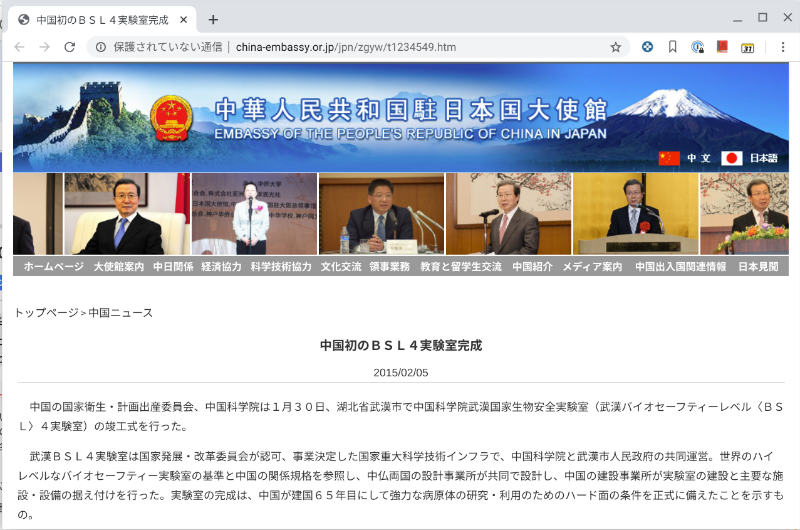 - 不幸中の幸いだが、2015年に武漢市に中国初のBSL4 (Bio safety level 4) 実験室が作られており、ウイルス自体の研究や治療法の解明に役立つだろう (棒読み)