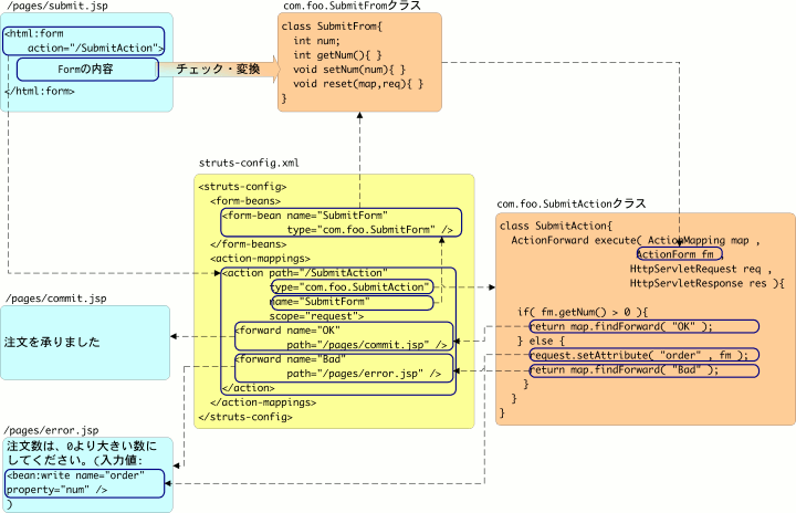 1. 上記のように Struts は、struts-config.xml を中心として動いています。