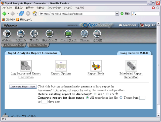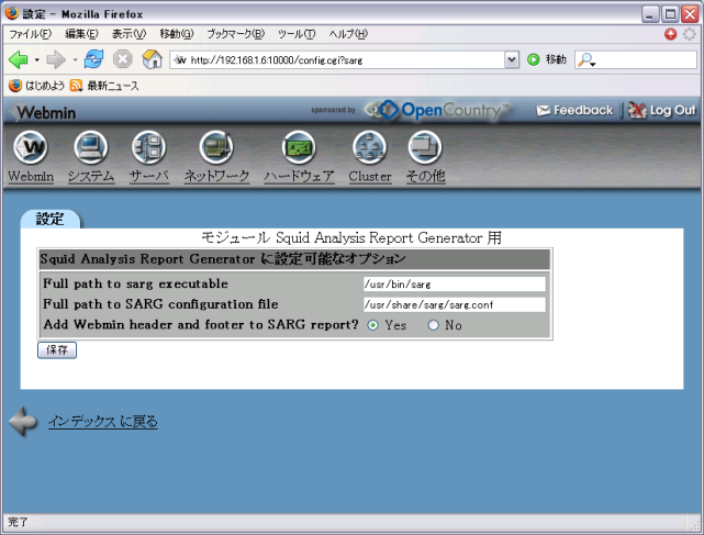 - webminからアクセスして、[サーバ]-[SARG] を選びます。