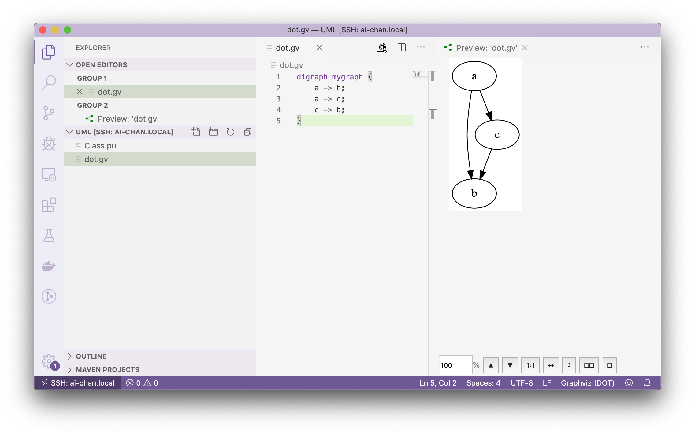 digraph mygraph { a -> b; a -> c; c -> b; }