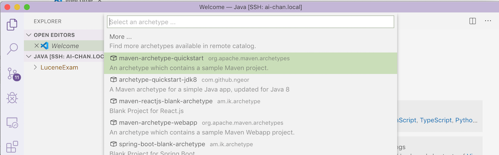 - archetype (Mavenのプロジェクト雛形) を選ぶ