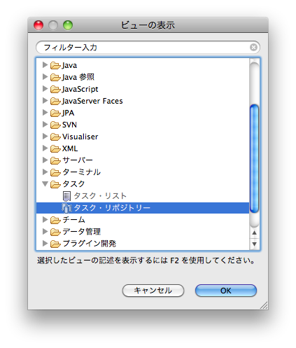 java.lang.NoSuchMethodError: org.eclipse.mylyn.internal.tasks.ui.views.TaskListFilteredTree.access$1 (Lorg/eclipse/mylyn/internal/tasks/ui/views/TaskListFilteredTree;)V→一度 Pleiades を無効化してタスクビューを表示してから、Pleiades を有効化すると旨く動くようになった
