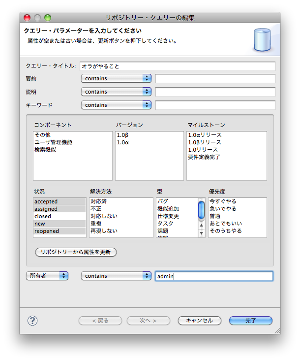 [inherit] file = C:\TracLight\python\share\trac\conf\trac.ini [project] name = SampleProject [ticket-workflow] accept = new,assigned,accepted,reopened -> accepted accept.name = 着手する accept.operations = set_owner_to_self accept.permissions = TICKET_MODIFY leave = * -> * leave.default = 1 leave.name = 変更しない leave.operations = leave_status reassign = new,assigned,accepted,reopened -> assigned reassign.name = 担当者変更 reassign.operations = set_owner reassign.permissions = TICKET_MODIFY reopen = closed -> reopened reopen.name = 差し戻す reopen.operations = del_resolution reopen.permissions = TICKET_CREATE resolve = new,assigned,accepted,reopened -> closed resolve.name = 解決にする resolve.operations = set_resolution resolve.permissions = TICKET_MODIFY