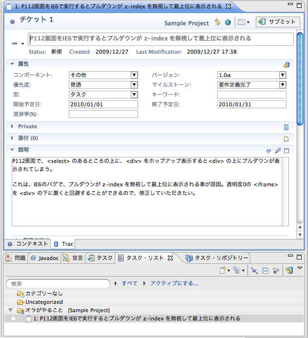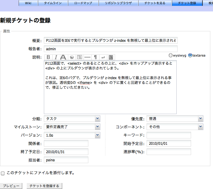 | fixed #123 | SVNコミット時に、一緒に Ticket 123 を修正済み( fixed )にする |