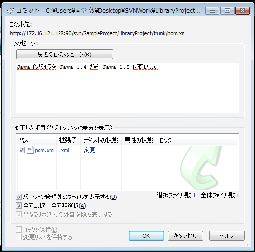 )にSVNにコミットして帰るSet objWshShell = CreateObject("WScript.Shell")