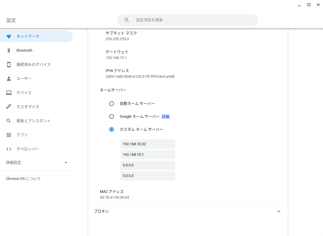 # Generated by NetworkManager search flets-east.jp iptvf.jp #nameserver 127.0.1.1 nameserver 8.8.8.8普通は変更いらないはず。NetworkManager? が、DHCPからもらった情報を設定してくれているはず。127.0.1.1 (Network Manager) → 192.168.10.1 (ルーター) で名前解決できるはずだけど、自分の環境ではだめだったので、google の DNS に問い合わせするように修正した